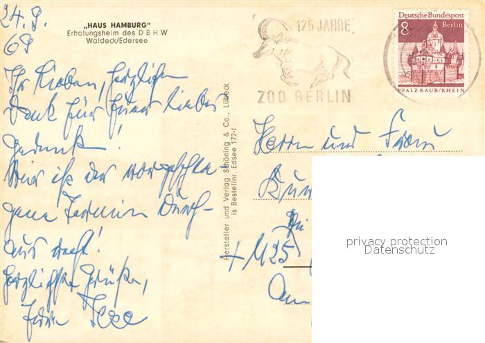 73708487 alte Postkarte Waldeck Edersee Blinden-Erholungsheim Haus Hamburg Edertalsperre Stausee Staumauer postalisch gelaufen Erhaltung siehe scans [FriedD77] KatCode: 11110006635021