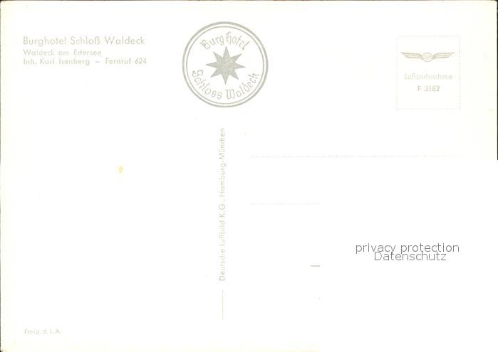 71847246 Waldeck Edersee Burghotel Schloss Waldeck Fliegeraufnahme postalisch nicht gelaufen Erhaltung siehe scans KatCode: 11110006635021