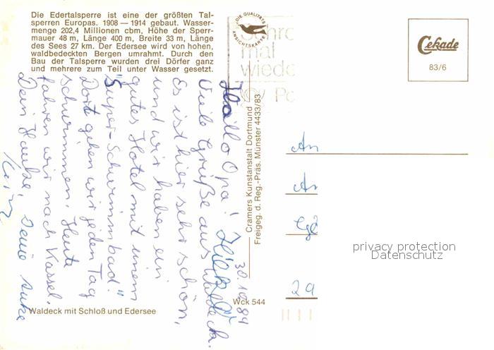72861793 alte Postkarte Waldeck Edersee Edertalsperre Schloss Fliegeraufnahme postalisch gelaufen Erhaltung siehe scans [FriedD77] KatCode: 11110006635021