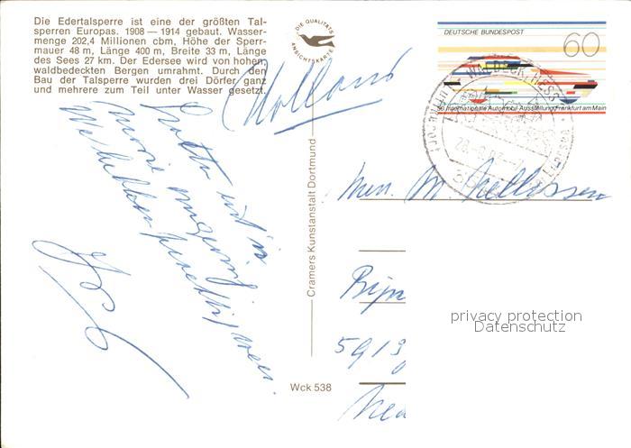 72450024 alte Postkarte Waldeck Edersee Edertalsperre Schloss postalisch gelaufen Erhaltung siehe scans KatCode: 11110006635021