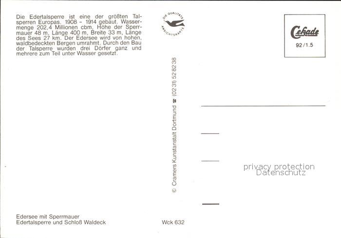 72496868 Waldeck Edersee Edertalsperre Sperrmauer Schloss Waldeck Fliegeraufnahme postalisch nicht gelaufen Erhaltung siehe scans KatCode: 11110006635021