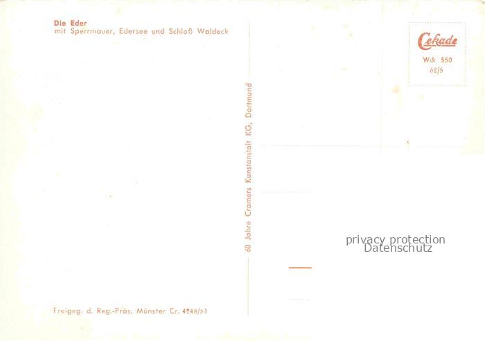 74025121 Waldeck Edersee Edertalsperre Sperrmauer Schloss Waldeck postalisch nicht gelaufen Fliegeraufnahme Erhaltung siehe scans [FriedD77] KatCode: 11110006635021