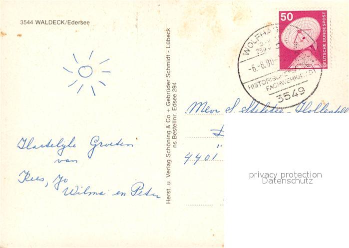 73308210 alte Postkarte Waldeck Edersee Fachwerk postalisch gelaufen Erhaltung siehe scans [LiesaD40] KatCode: 11110006635021