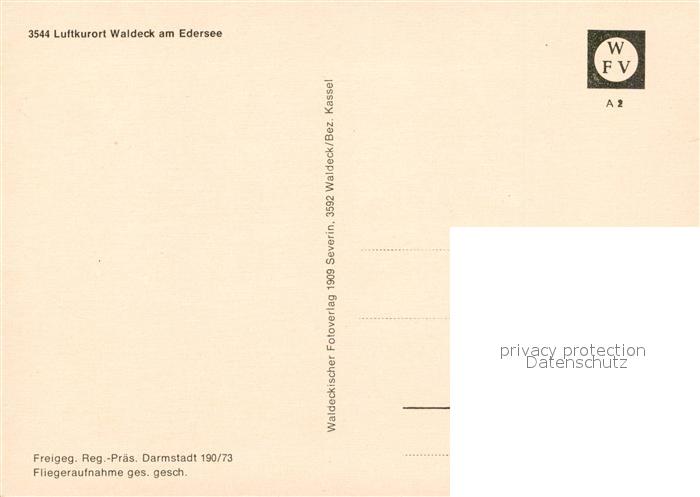 73209922 Waldeck Edersee Fliegeraufnahme postalisch nicht gelaufen Erhaltung siehe scans [WerneD78] KatCode: 11110006635021