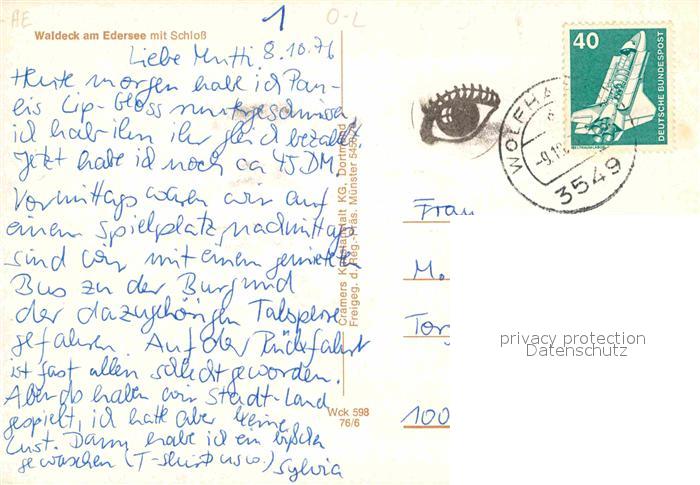 72855098 alte Postkarte Waldeck Edersee Fliegeraufnahme Schloss postalisch gelaufen Erhaltung siehe scans [AndreD76] KatCode: 11110006635021