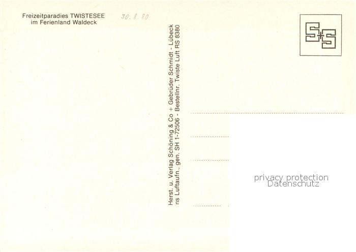 73686221 Waldeck Edersee Freizeitparadies Twistesee Fliegeraufnahme postalisch nicht gelaufen Erhaltung siehe scans [WerneD78] KatCode: 11110006635021