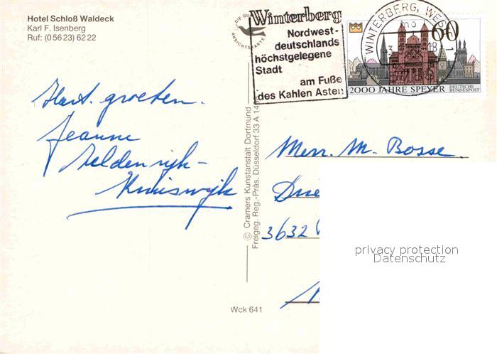 72663084 alte Postkarte Waldeck Edersee Hotel Schloss Waldeck Fliegeraufnahme postalisch gelaufen Erhaltung siehe scans [WerneD78] KatCode: 11110006635021