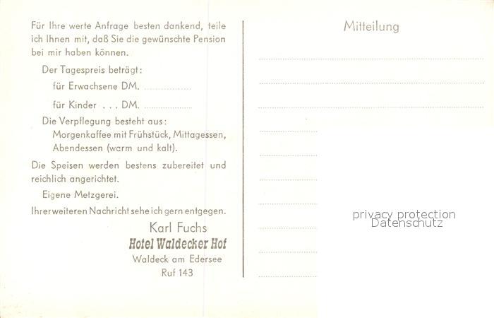 43368670 Waldeck Edersee Hotel Waldecker Hof Veranda Schloss Sperrmauer Fliegeraufnahme postalisch nicht gelaufen Erhaltung siehe scans [FriedD77] KatCode: 11110006635021