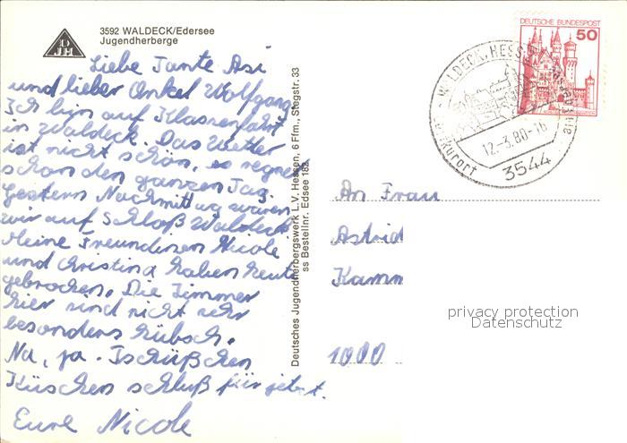 72296388 alte Postkarte Waldeck Edersee Jugendherberge Segelboot postalisch gelaufen Erhaltung siehe scans KatCode: 11110006635021
