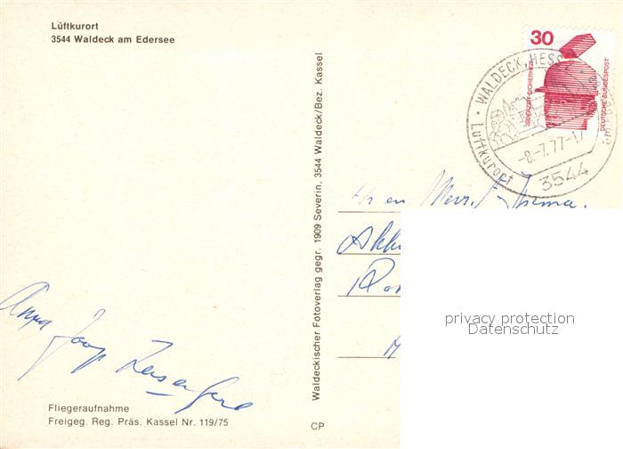 72942899 alte Postkarte Waldeck Edersee Luftkurort Fliegeraufnahme postalisch gelaufen Erhaltung siehe scans [FriedD77] KatCode: 11110006635021