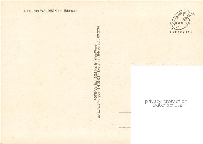 73617921 Waldeck Edersee Luftkurort Fliegeraufnahme postalisch nicht gelaufen Erhaltung siehe scans [FriedD77] KatCode: 11110006635021
