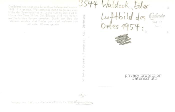 73692467 Waldeck Edersee mit Schloss und Edersee postalisch nicht gelaufen Fliegeraufnahme Erhaltung siehe scans [WerneD78] KatCode: 11110006635021