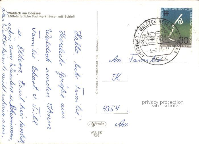 72209226 alte Postkarte Waldeck Edersee Mittelalterliche Fachwerkhaeuser mit Schloss postalisch gelaufen Erhaltung siehe scans KatCode: 11110006635021