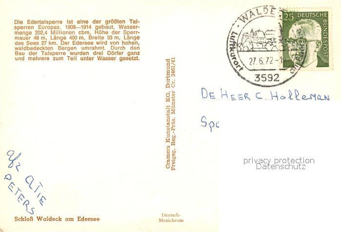 73307052 alte Postkarte Waldeck Edersee Schloss postalisch gelaufen Erhaltung siehe scans [KathaD81] KatCode: 11110006635021