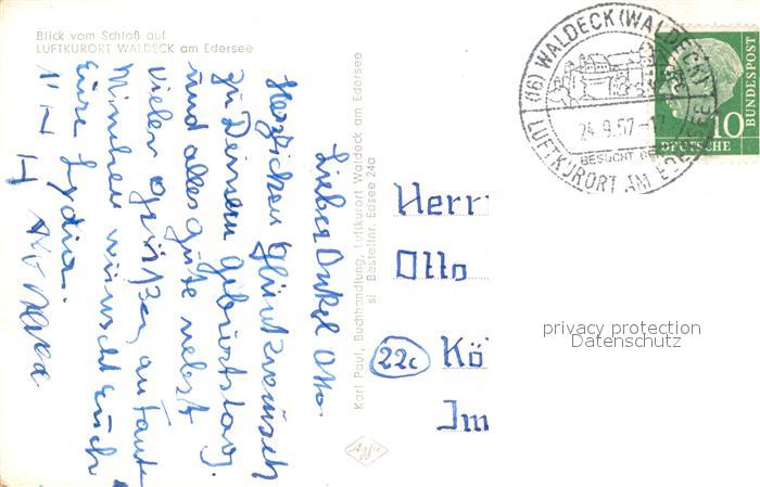 72991630 alte Postkarte Waldeck Edersee Schloss postalisch gelaufen Erhaltung siehe scans [AndreD76] KatCode: 11110006635021