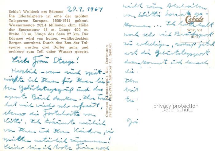 73479125 Waldeck Edersee Schloss Fliegeraufnahme postalisch nicht gelaufen Erhaltung siehe scans [FriedD77] KatCode: 11110006635021