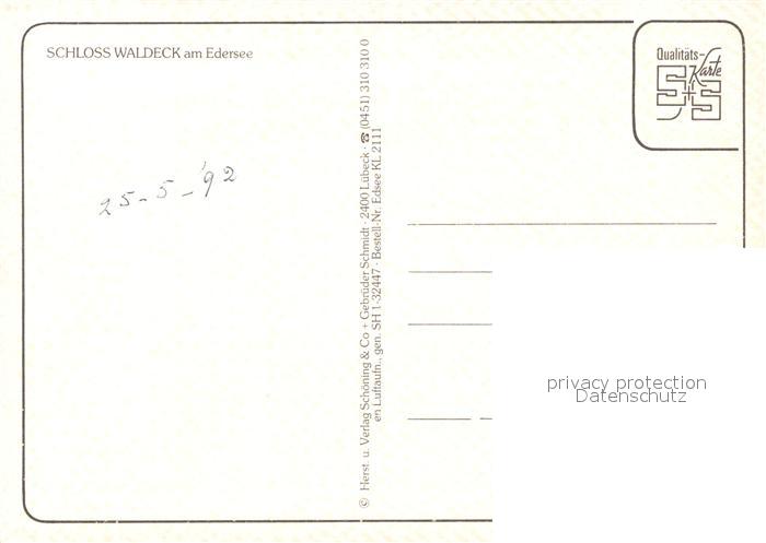 73166449 Waldeck Edersee Schloss Fliegeraufnahme postalisch nicht gelaufen Erhaltung siehe scans [FriedD77] KatCode: 11110006635021