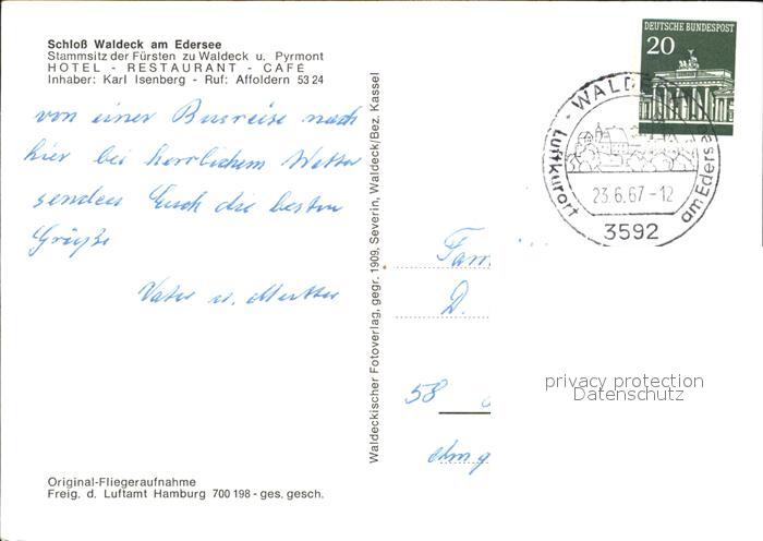 72580277 alte Postkarte Waldeck Edersee Schloss Hotel Restaurant Cafe postalisch gelaufen Erhaltung siehe scans [KathaD79] KatCode: 11110006635021
