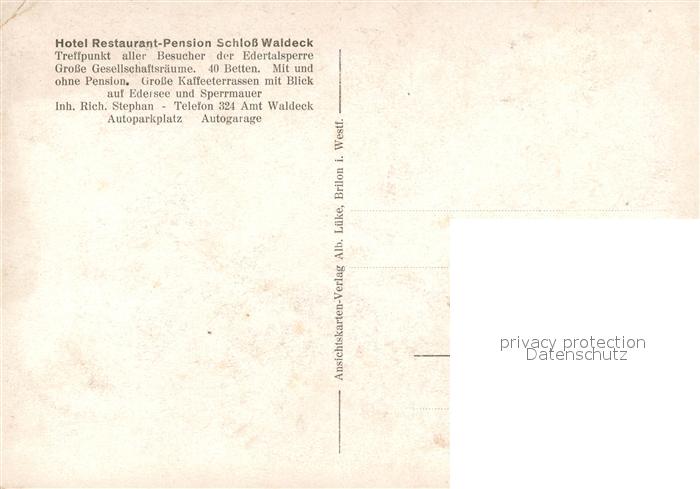 73318500 Waldeck Edersee Schloss Hotel Restaurant Edertalsperre Fliegeraufnahme postalisch nicht gelaufen Erhaltung siehe scans [FriedD77] KatCode: 11110006635021