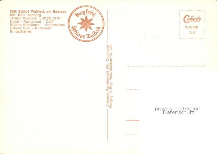 72113866 Waldeck Edersee Schloss Waldeck Fliegeraufnahme postalisch nicht gelaufen Erhaltung siehe scans KatCode: 11110006635021