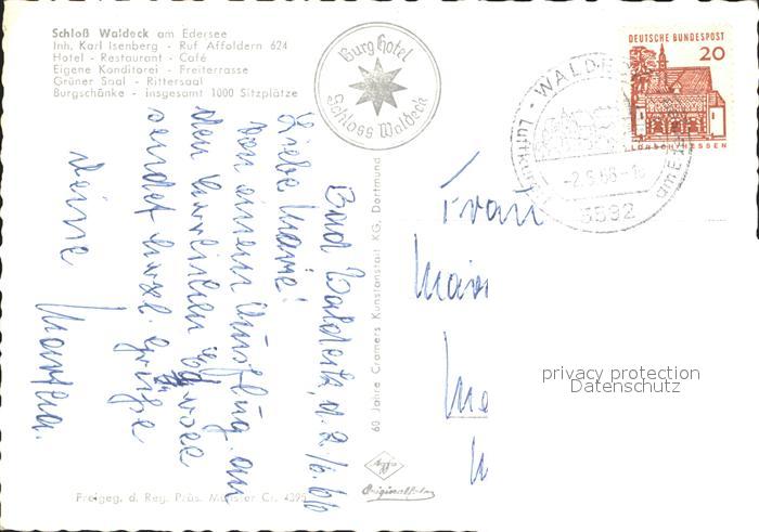 72273404 alte Postkarte Waldeck Edersee Schloss Waldeck Fliegeraufnahme postalisch gelaufen Erhaltung siehe scans KatCode: 11110006635021