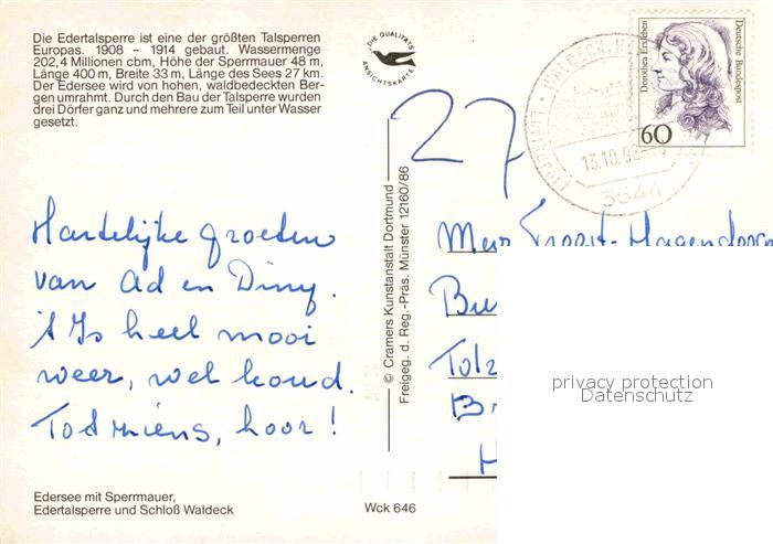 72894519 alte Postkarte Waldeck Edersee Schloss Waldeck Stadtkirche Schulstrasse Fachwerkhaeuser postalisch gelaufen Erhaltung siehe scans [KathaD81] KatCode: 11110006635021