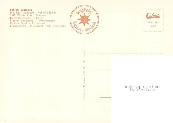 73752632 Waldeck Edersee Schloss Waldeck Terrasse postalisch nicht gelaufen Erhaltung siehe scans [LiesaD40] KatCode: 11110006635021