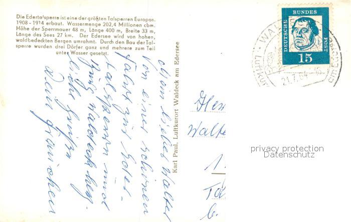 43368671 alte Postkarte Waldeck Edersee Sperrmauer Schloss Ortsmotiv postalisch gelaufen Erhaltung siehe scans [FriedD77] KatCode: 11110006635021