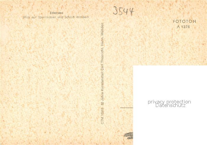 73692927 Waldeck Edersee Sperrmauer und Schloss Waldeck postalisch nicht gelaufen Erhaltung siehe scans [WerneD78] KatCode: 11110006635021