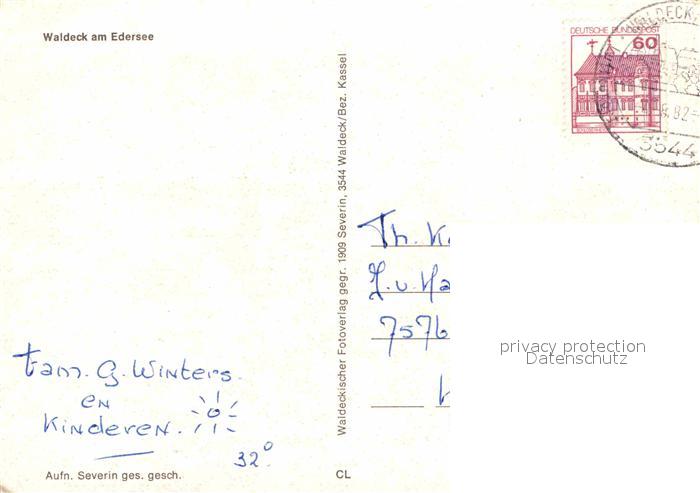 72916598 alte Postkarte Waldeck Edersee Teilansicht postalisch gelaufen Erhaltung siehe scans [NatalD47] KatCode: 11110006635021