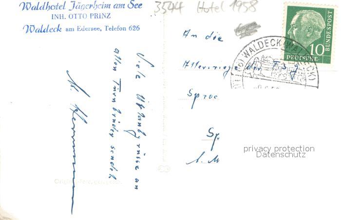 73702476 alte Postkarte Waldeck Edersee Waldhotel Jaegerheim am See postalisch gelaufen Erhaltung siehe scans [LiesaD40] KatCode: 11110006635021