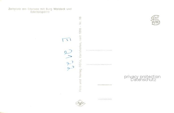 73673138 Waldeck Edersee Zeltplatz am Edersee mit Burg Waldeck und Edertalsperre postalisch nicht gelaufen Erhaltung siehe scans [FriedD77] KatCode: 11110006635021