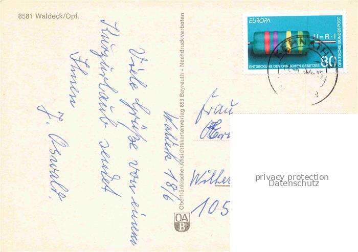 74043128 alte Postkarte Waldeck Oberpfalz Fliegeraufnahme postalisch gelaufen Erhaltung siehe scans [WerneD78] KatCode: 11110009377129