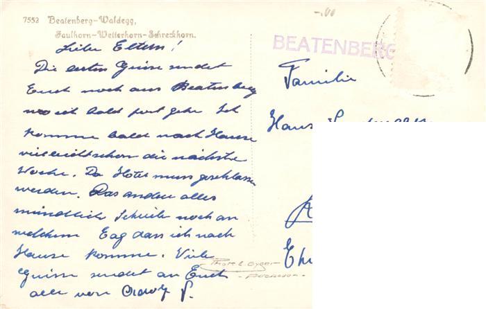 13919917 alte Postkarte Waldegg Beatenberg mit Faulhorn Wetterhorn Schreckhorn postalisch gelaufen Erhaltung siehe scans [FriedD77] KatCode: 11470060175234