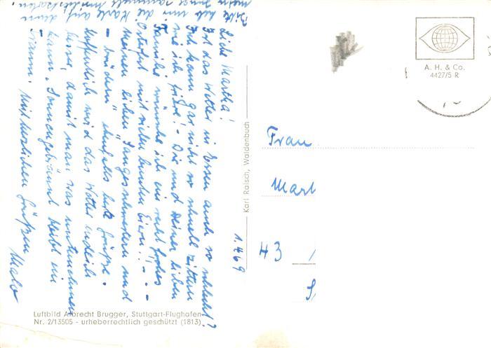 73872405 alte Postkarte Waldenbuch Fliegeraufnahme postalisch gelaufen Erhaltung siehe scans [WerneD78] KatCode: 11110008115048