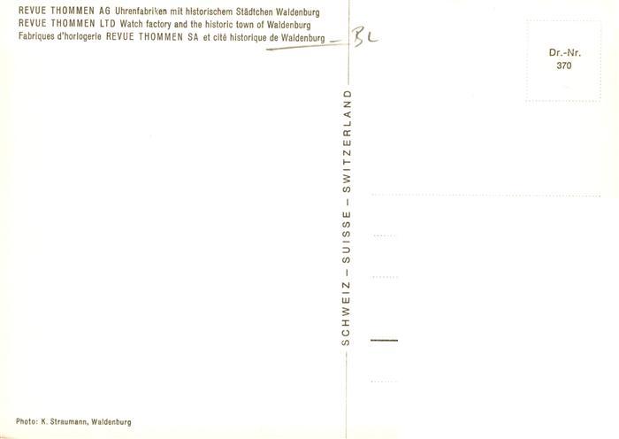 13945473 Waldenburg BL Revue Thommen AG Uhrenfabriken postalisch nicht gelaufen Erhaltung siehe scans [FriedD77] KatCode: 11470040100780