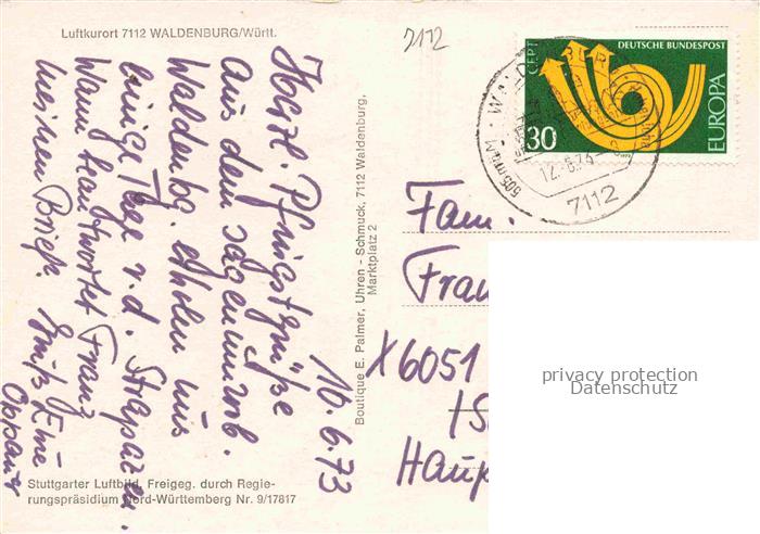 74054848 alte Postkarte Waldenburg Hohenlohekreis BW Panorama Luftkurort postalisch gelaufen Fliegeraufnahme Erhaltung siehe scans [FriedD77] KatCode: 11110008126085