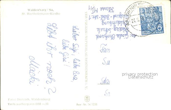 71923955 alte Postkarte Waldenburg Sachsen Kirche postalisch gelaufen Erhaltung siehe scans KatCode: 11110014173260