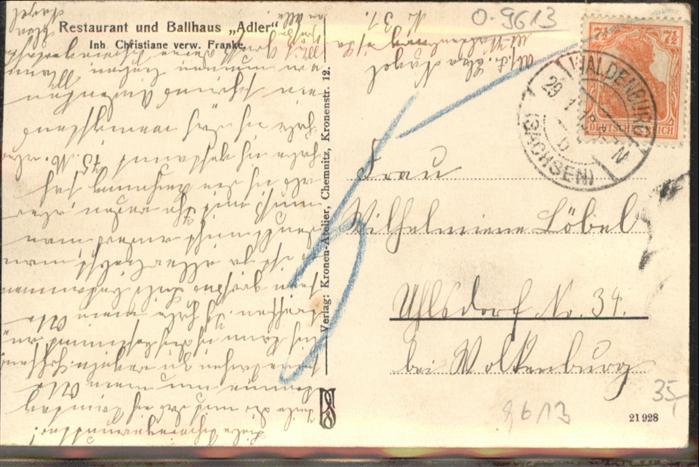 40908332 Waldenburg Sachsen [Stempelabschlag] Restaurant Ballhaus Adler KatCode 11110014173260