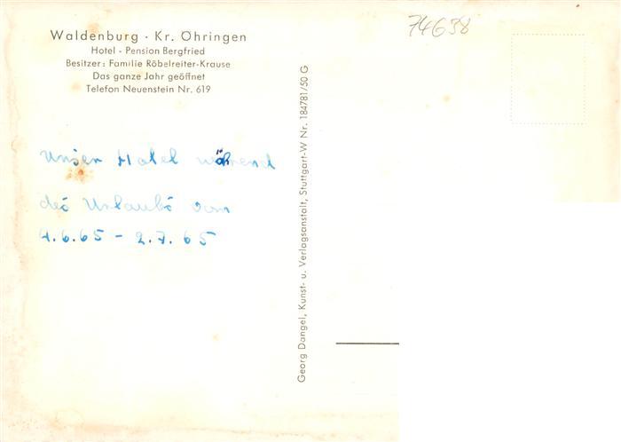 73884593 Waldenburg Wuerttemberg Hotel Pension Bergfried Restaurant postalisch nicht gelaufen Erhaltung siehe scans [WerneD78] KatCode: 11110008126085