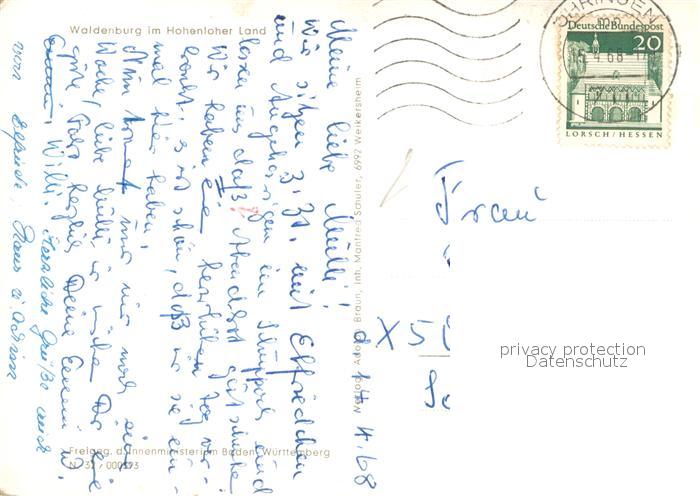 73712236 alte Postkarte Waldenburg Wuerttemberg im Hohenloher Land postalisch gelaufen Fliegeraufnahme Erhaltung siehe scans [FriedD77] KatCode: 11110008126085