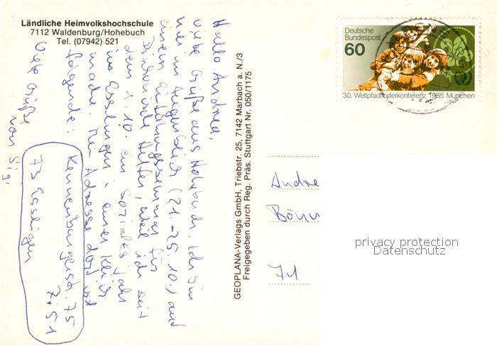 73110449 alte Postkarte Waldenburg Wuerttemberg Laendliche Heimvolkshochschule postalisch gelaufen Erhaltung siehe scans [NatalD47] KatCode: 11110008126085