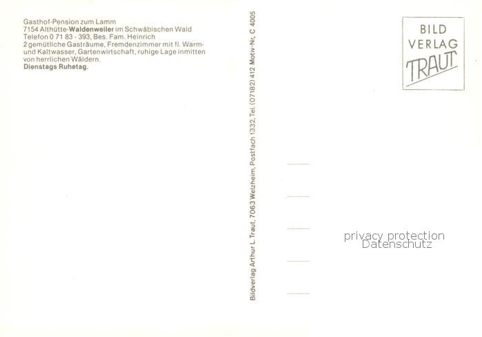73866946 Waldenweiler Gasthof Pension Lamm Althuette Waldenweiler Gastraum postalisch nicht gelaufen Erhaltung siehe scans [WerneD78] KatCode: 11110008119004