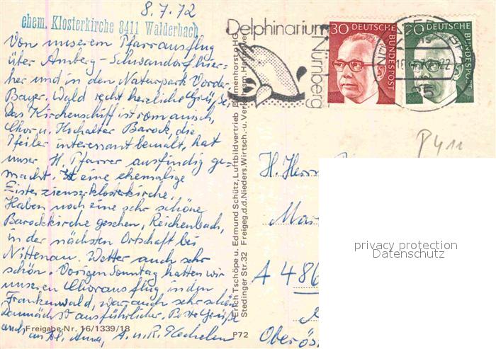 72837263 alte Postkarte Walderbach Fliegeraufnahme mit Klosterkirche postalisch gelaufen Erhaltung siehe scans [WerneD78] KatCode: 11110009372170