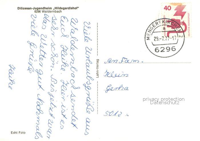 73660528 alte Postkarte Waldernbach Dioezesan-Jugendheim Hildegardishof Kirche postalisch gelaufen Erhaltung siehe scans [FriedD77] KatCode: 11110006533011