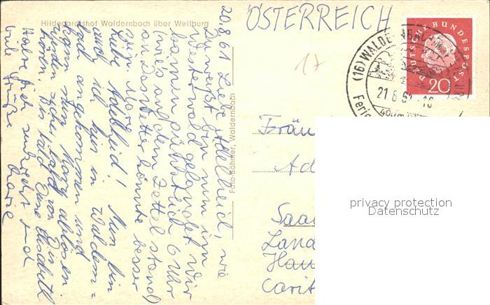 72130444 alte Postkarte Waldernbach Hildegardtshof postalisch gelaufen Erhaltung siehe scans KatCode: 11110006533011