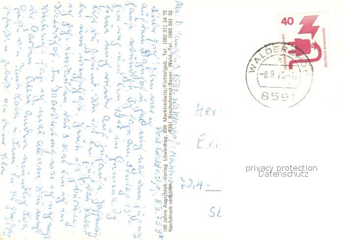 73672033 alte Postkarte Waldershof Panorama Fichtelgebirge Ortsansichten Wohnsiedlung Aussichtspunkt Freibad postalisch gelaufen Erhaltung siehe scans [FriedD77] KatCode: 11110009377157