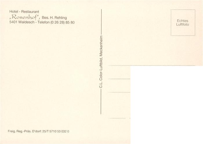 73881023 Waldesch Hotel Restaurant Rosenhof Fliegeraufnahme postalisch nicht gelaufen Erhaltung siehe scans [WerneD78] KatCode: 11110007137227