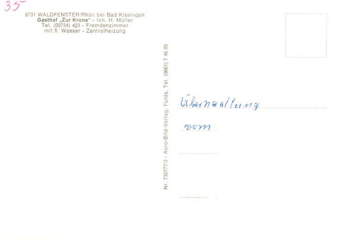 73896461 Waldfenster Gasthof Zur Krone Gastraum Panorama postalisch nicht gelaufen Erhaltung siehe scans [WerneD78] KatCode: 11110009672117