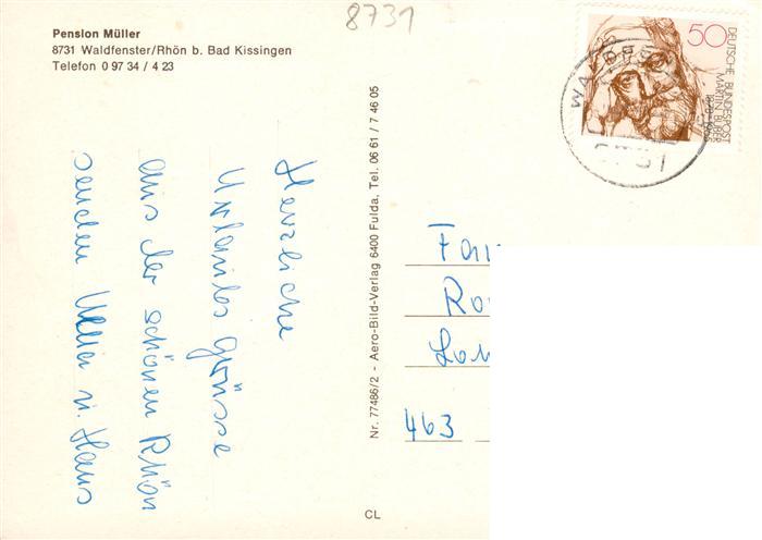 73892968 Waldfenster Pension Mueller Panorama postalisch nicht gelaufen Erhaltung siehe scans [WerneD78] KatCode: 11110009672117